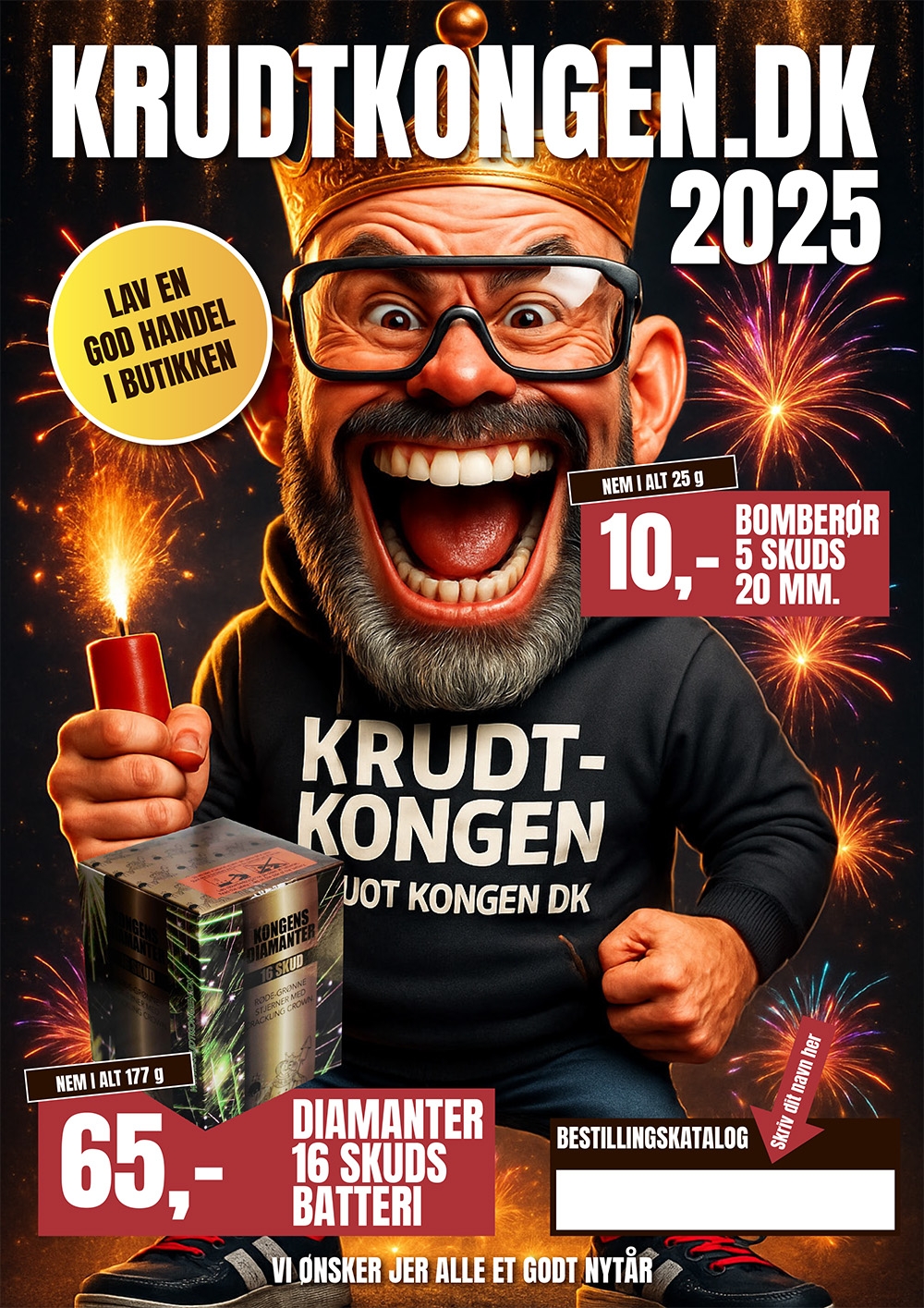 Oplev himlen lyse op med vores ekstraordinære udvalg af fyrværkeriprodukter! Hos Friis´s Fyrværkeri har vi alt, hvad du skal bruge til at gøre dine festligheder uforglemmelige. Uanset om du planlægger en stor fest, en intim sammenkomst eller en national helligdag, har vi produkterne, der vil få dit arrangement til at gnistre med farver og eksplosioner.